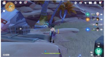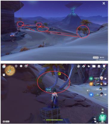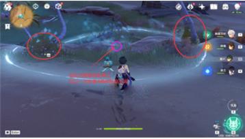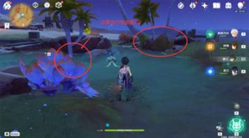 1、到避让之丘小水池这里,这里的四棵树用道具一键采集;