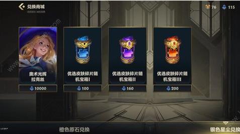 1、在战利品的兑换商城中,我们可以用银色形成兑换【奥术光辉拉克丝皮肤】、【优选皮肤碎片随机宝箱I】、【优选皮肤碎片随机宝箱II】、【优选皮肤碎片随机宝箱III】.