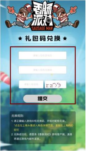 4、输入自己的兑换码和游戏ID即可完成香肠派对兑换码输入。