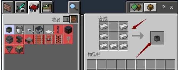 6.用7个铁锭在工作台中合成一个炼药锅。