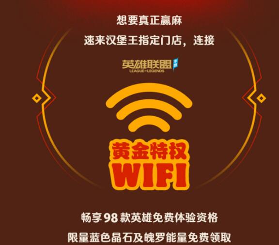 与新品同步登场的是,本次联名合作将推出专属的《英雄联盟手游》福利活动!从9月13日起,消费者前往汉堡王中国部分配置英雄联盟手游商户特权的门店,连接汉堡王门店Wi-Fi,不仅可以免费使用98个英雄联盟手游的英雄,还能免费领取限量蓝色晶石及魄罗能量。