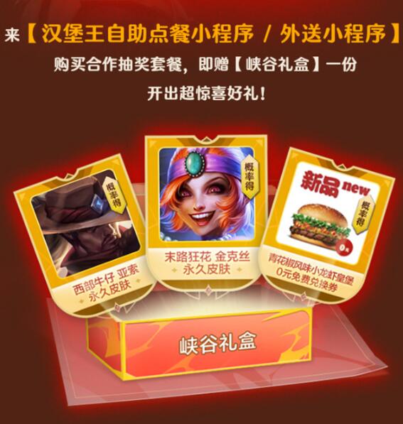 此外,汉堡王还和《英雄联盟手游》推出合作抽奖套餐,奖品内容包括西部牛仔 亚索永久皮肤,末路狂花 金克丝 永久皮肤,青花椒风味小龙虾皇堡0元免费兑换券等。