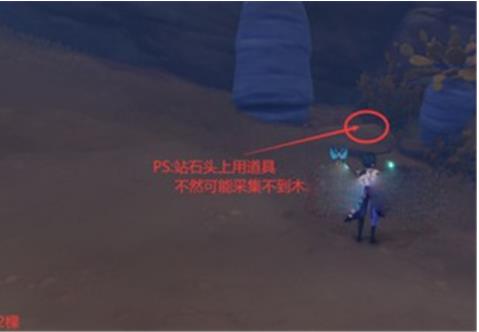 4.爬上山丘往左边走,会看到2棵树,用道具采集,然后继续往前走