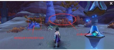 2.传送锚点右边这里有2棵树用道具即可一键采集