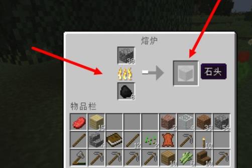 6.打开熔炉,把圆石和煤矿放进去,烧出石块,需要3个石块。