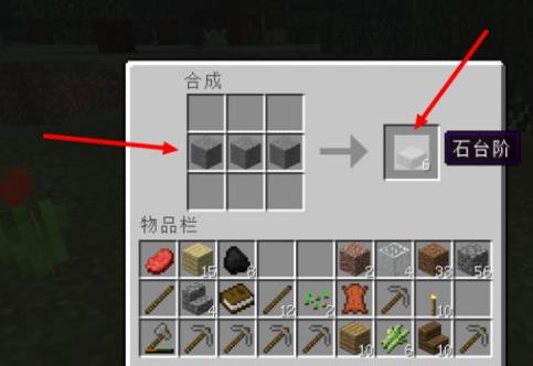 7.获得石块后,打开工作台,按图中把石块放上,获得石台阶。