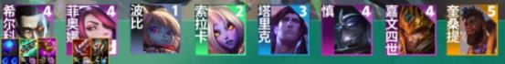 7人口由波比、奶妈、宝石、慎、皇子、剑姬、希尔科组成3德玛、2法师、2巨神峰羁绊