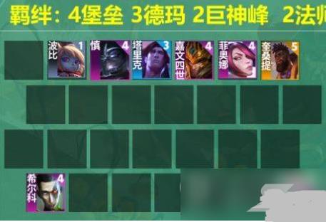 羁绊:4堡垒、3德玛西亚、2巨神峰、2法师