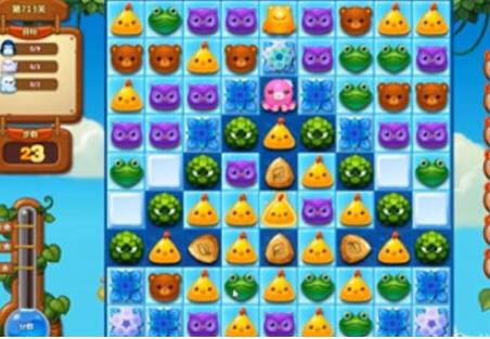 开心消消乐如何通过713关?开心消消乐是一款消除的休闲游戏,玩家需要把游戏中的相同的3个或3个以上的同一动物消除,完成关卡要求就可以通关。游戏有很多关卡,每个关卡的通关要求都不一样,难度也是不一样的,越多动物消除产生的道具就越厉害,这样通关就简单了很多。玩家可以借助道具辅助消除来通关,很多玩家觉得713关很难通关,那么通关713关有什么技巧呢?接下来就让小编给大家介绍一下通关713的方法。