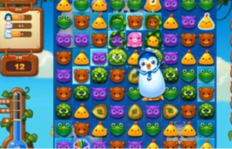 中间魔法石的旁边出现的小黄鸡是比较多的,我们首先来利用小黄鸡的消除,点亮魔法石。然在绿叶球的上面都是雪块的阻碍,当雪块消除之后,绿叶球就会开始蔓延。这个之后中间的魔法石都会被点亮了,利用魔法石的循环魔法释放,收回树藤之后,连中间的冰块都会全部的被消除。这样中间的小动物就会被解救了。