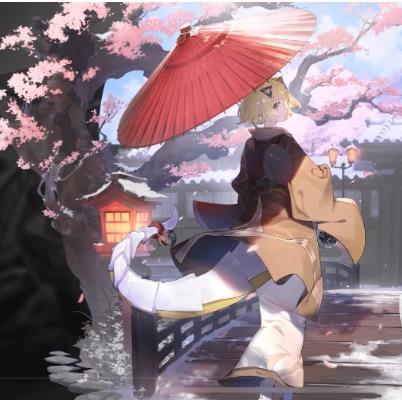 薇丝在穿上这套皮肤之后背景会呈现在日式园林当中,远处还有粉色的樱花树开的正好,身上穿着的服饰是日式的和服,整体的颜色是类似清浅的卡其色,跟薇丝头上淡黄色的短发很相配,最吸睛的一点是手上的伞,是红色的伞面。