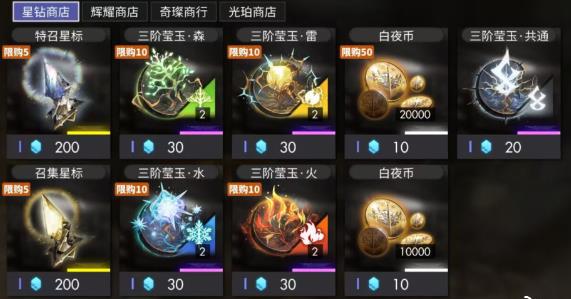 每个六星光灵:一个特殊心珀、两百个普通心珀、两个闪耀钻石;