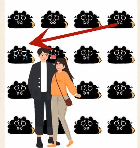 1、玩家进入关卡后首先点击眼神向前看的女人。