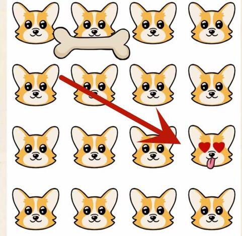 5、将骨头在每个小狗面前划过,点击心动的小狗。