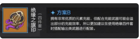 能提供不错的输出属性,加强行秋爆发伤害,但缺少充能,可以考虑配合绝缘四进行搭配,也较为优质。
