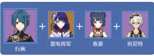 香萎搭配班尼特激活双火为队伍提高伤害,行秋是高频挂水并且为队伍提供减伤与高频水伤,队伍整体元素爆发期间伤害优秀。