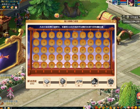 活动期间,玩家可前往月宫或大唐境外的兔子洞,通过观察场景道具,与之互动从而解开谜题,获得经验奖励;还可在长安城(227,115)流月仙子处选择“瑶台银阙灯谜现(特色玩法)”,查看自己的解谜进度,并领取金钱、道具奖励。
