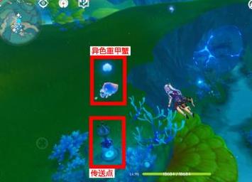 3、传送后,看下四周,找到带有螃蟹技能图标的异色重甲蟹