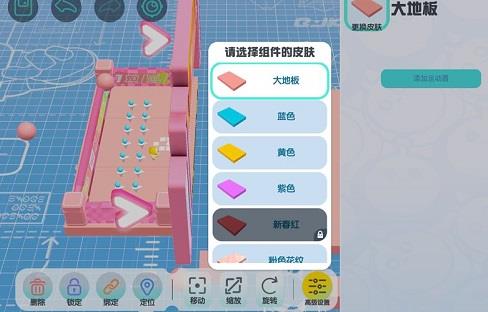 操作栏提供组件高级设置,【更换皮肤】即可为组件染色、或更换贴图和材质等。