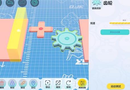 【机关组件】的详情界面中可以调整该组件的运动及其他属性参数,不同的机关会有不同的参数可以调整(比如齿轮可以调整转速)