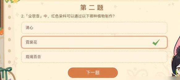 2、尘歌壶中,红色燃料可以通过以下哪种植物制作?