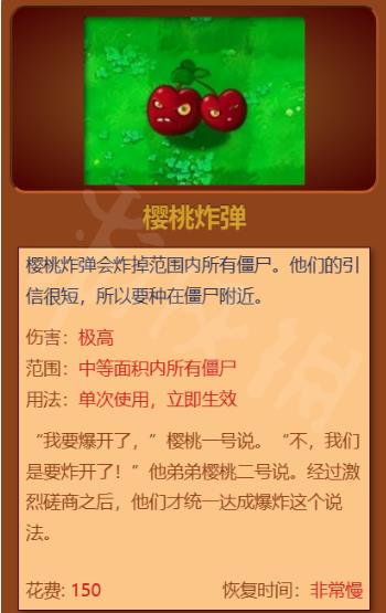 植物大战僵尸2樱桃炸弹怎么样 植物大战僵尸2樱桃炸弹介绍