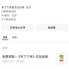 3、可以看到免费领取《羊了个羊》红包皮肤封面文章推送,点击进入;