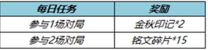 金秋挑战分为2期,每期可收集金秋印记*10,共可收集金秋印记*20