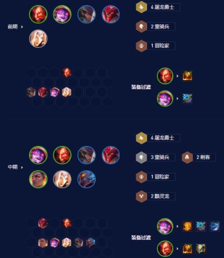 比较怕玉龙和赛芬,但是当前版本玉龙赛芬被削弱,所以不用特别担心,因为有黯灵龙献祭的双圣杯,所以这套阵容相较于传统屠龙莉莉娅上限更高,且过渡平滑,是一套不错的上分阵容。