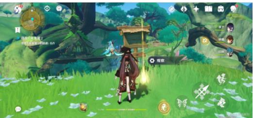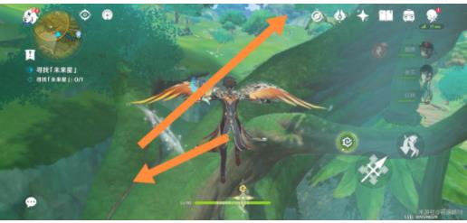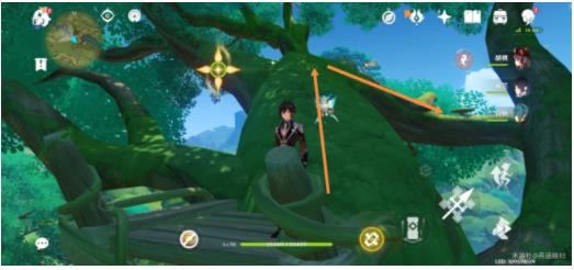 观察后,前面就会出现两个光点,和风场,我们跟着快到快速移动过去,然后接风场飞到前面的树根