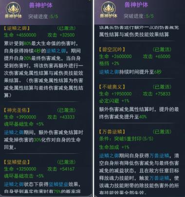 3、共有五层封印,封印均突破完成后,更可获得额外的强力技能,使兽神逆鳞提供更强的护体效果!