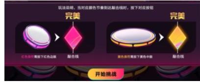 (3)红色音符需点击左侧或右侧(其中之一)的红色电鼓,黄色音符需点击屏幕中间黄色电鼓敲击获得评分。