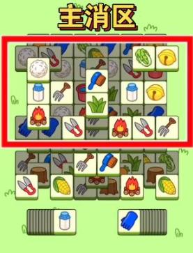 2、如上图,我们今天先来消除掉核心区的主消卡牌,尽量一层一层的去消除!