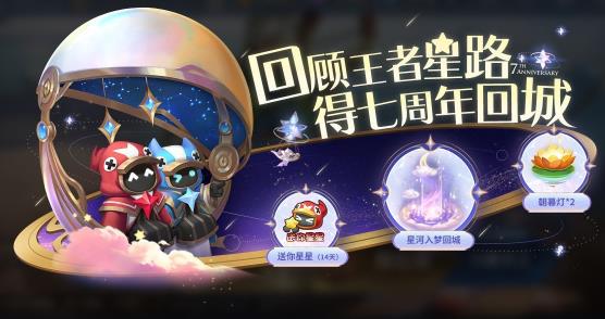 活动奖励:查看数据回顾,点亮星路送七周年-星河入梦回城特效、限时表情-送你星星。