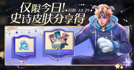 活动奖励:10月29日当天登录并分享邀请函即可获得限时语音:王者生日快乐、史诗皮肤随机宝箱,开启宝箱可得随机史诗皮肤*1!