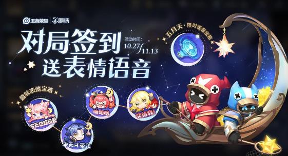 活动期间累计签到/参与对局即可领取五月天限时语音宝箱和荣誉之战表情礼包等好礼!