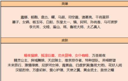 打开后必得皮肤碎片*2、铭文碎片*100和以下随机奖励之一:皮肤或皮肤体验卡(7日)1张(鲁班七号-电玩小子、阿轲-暗夜猫娘、韩信-白龙吟、大乔-猫狗日记)