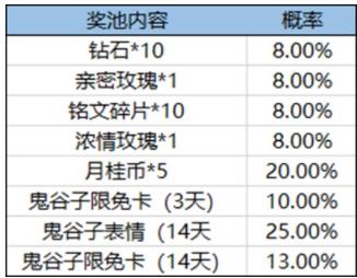 6、当成熟度达到200后,玩家可消耗后续获得的星沙进行抽奖(每抽将消耗30星沙),有概率获得鬼谷子静态表情:过来吧你们!(14天体验卡)、浓情玫瑰等奖励;