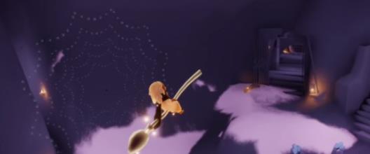 大厅里面空中的扫把是可以骑的,可以在大厅里面遨游。