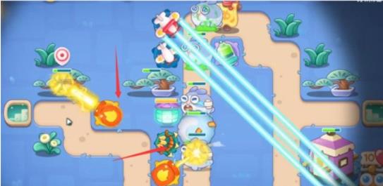 2.优先清理掉金箱子,同时利用飞机塔的高伤害和穿透的特性将第一波兔子顺利清理掉。