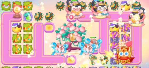 1、本关能够使用的炮塔是:毒针、回旋镖、多重箭、烟花、月亮、星星,今天我们用回旋镖和多重箭玩。