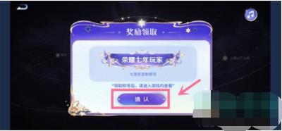 4、随着小视频的完结,即可出现奖励领取的弹框,荣耀七年玩家下方点确认;