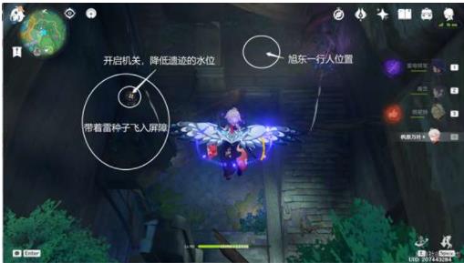 5、进入遗迹第一层,击败怪物后要解密机关,攻击左右两侧的机关就行。