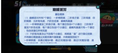 1、巅峰派对一共有着7个段位,每个段位之间都有多个小段位。