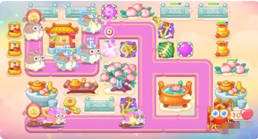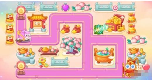 3、鱼刺开右侧的大道具,之后开蟠桃树附近的钱袋,之后将所有炮塔升满级。