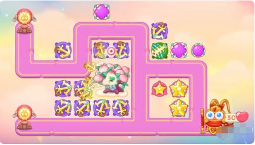 1、本关能够使用的炮塔是:毒针、魔法球、船锚、鱼刺、星星、烟花,这一关用需防空。