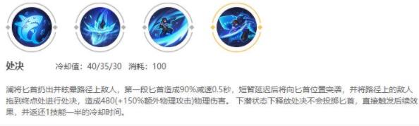 一技能下潜加速,直接大招接近接二技能平A,适用于追击残血,也适合抓没有位移的英雄。