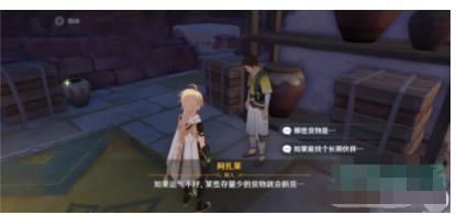 3、返回到阿如村之后,找到阿扎莱与其对话,向其说明订货的情况,接着提交拉玛的收货单;