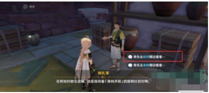 2、最后和拉玛对话后,会触发各种选项,这里对话内容选择:再去别处看看,然后就可以去朱特家看看进行比价;