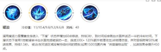 一技能下潜加速,直接大招接近接二技能平A,适用于追击残血,也适合抓没有位移的英雄。